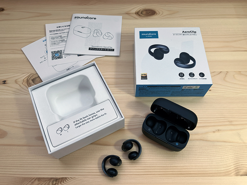 Soundcore AeroClip 充電ケースとイヤホン本体