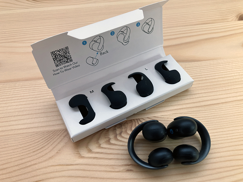 ただし Soundcore AeroClip には装着感の調整が可能なイヤーカフキャップが2セット付属しており、何もつけない状態も含め3つの着け心地を選べるため、かなり幅広い方にフィットするものと思われます。