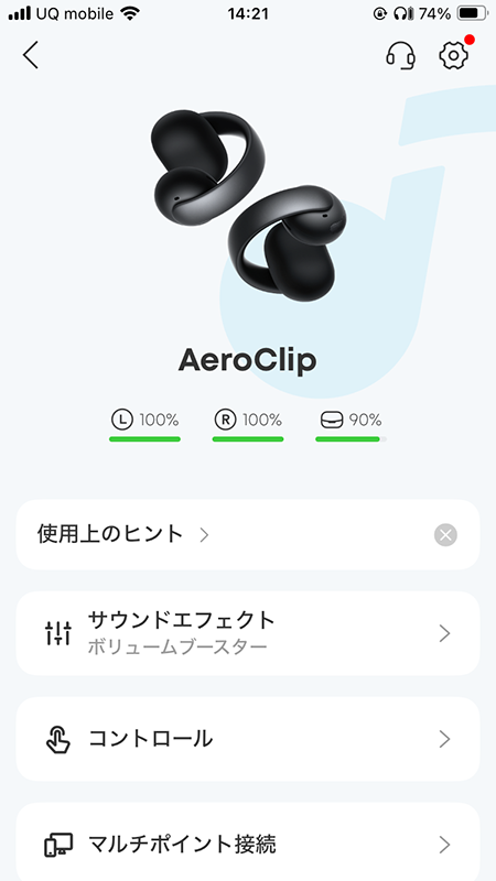 Soundcore AeroClip では専用アプリをダウンロードすることで、設定を自分好みにカスタマイズできます。